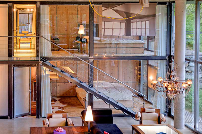It’s as if someone just plopped a super modern New York style loft into the Alp cliff-sides of Zermatt, Switzerland. Mixing pine with steel with glass, local architect Heinz Julen has created a modern retreat in the heart of one of the most prestigious ski destinations in the world. The best feature of this space is a suspended and illuminated table which can be raised and lowered from coffee table, to dining table, to ceiling height. The place is an adventure on its own, it might tempt you to never put on a ski boot.